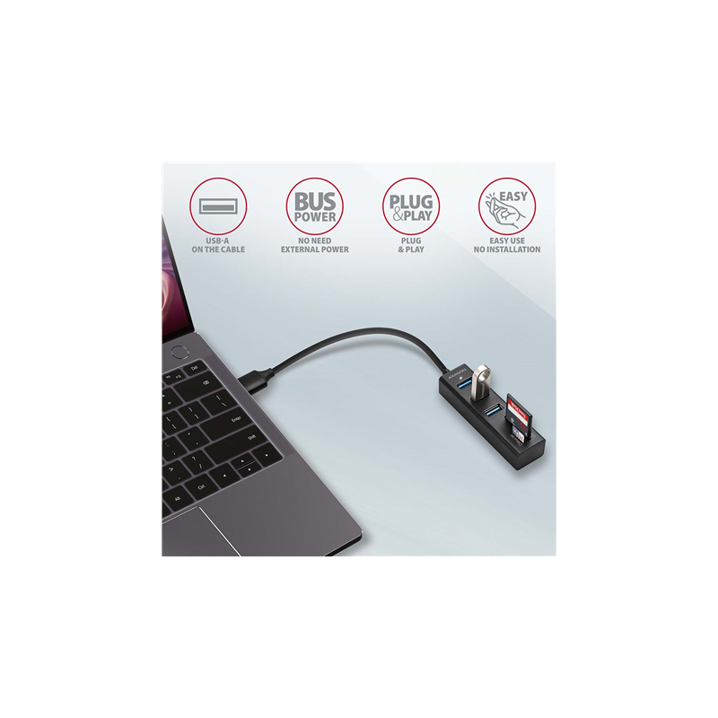 AXAGON SuperSpeed USB-A Hub and Card Reader | HMA-CR3A