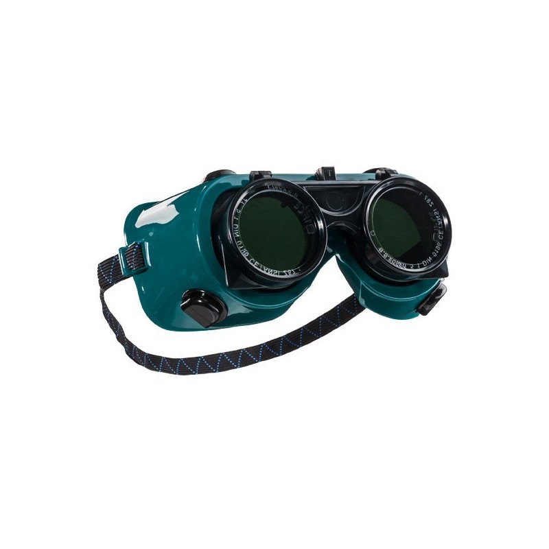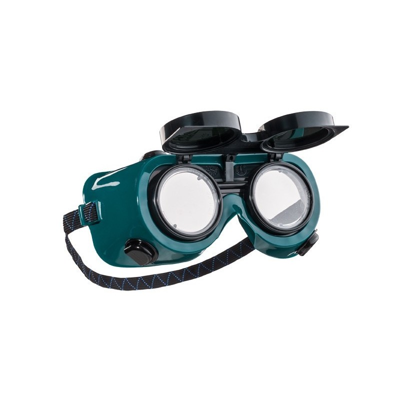 Apsauginiai suvirinimo akiniai su pakeliamais apvaliais lęšiais. Skaidrūs vidiniai lęšiai - fiksuoti, išoriniai tamsinti lęšiai - pakeliami. Standartiškai komplektuojami su DIN5 užtamsinimo lęšiais. Dėl tamprios gumelės šiuos akinius lengva pritaikyti kiekvieno darbuotojo poreikiams. Akiniai turi keturias netiesioginės ventiliacijos angas. Pagaminti iš minkštos nealergizuojančios PVC, suteikia apsaugą nuo smulkių lekiančių dalelių, UV ir IR spindulių.
