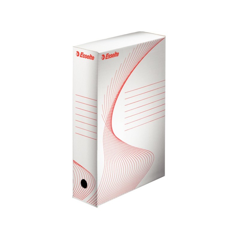 Archyvinė dėžė ESSELTE. Idealiai tinka dokumentų saugojimui. Dėžutės dydis atitinka 75 mm segtuvą, todėl lengvai perkesite dokumntus saugojimui. Pagaminta iš 100% perdirbto kieto 380 gsm geros kokybės gofruoto kartono. Suliniuota vieta užrašams ir paaiškinimams. Atsidaro iš ilgosios kraštinės. Pakuotėje 10 vnt., parduodama po 1 vnt.