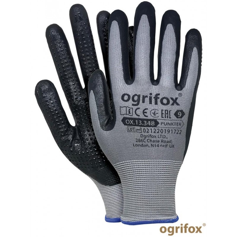 Darbo pirštinės aplietos nitrilu PUNKTER - 8 dydis