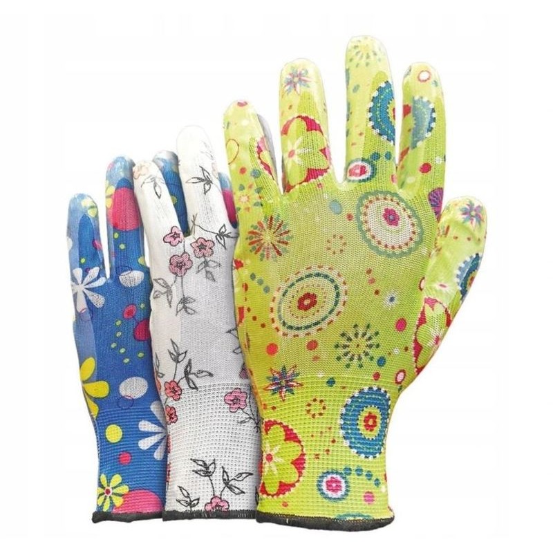 Aplietos moteriškos apsauginės pirštinės iš poliesterio. Delnas aplietas nitrilo sluoksniu. Pirštinės su megztais rankogaliais komfortiškam prigludimui, itin lanksčios, todėl puikiai prisitaiko prie rankos. Nesuvaržo rankos judesių, netrukdo dirbti kruopštumo, miklumo reikalaujančių darbų. Dydis S.
