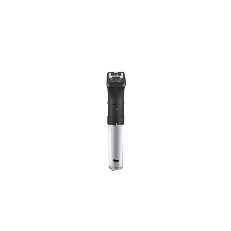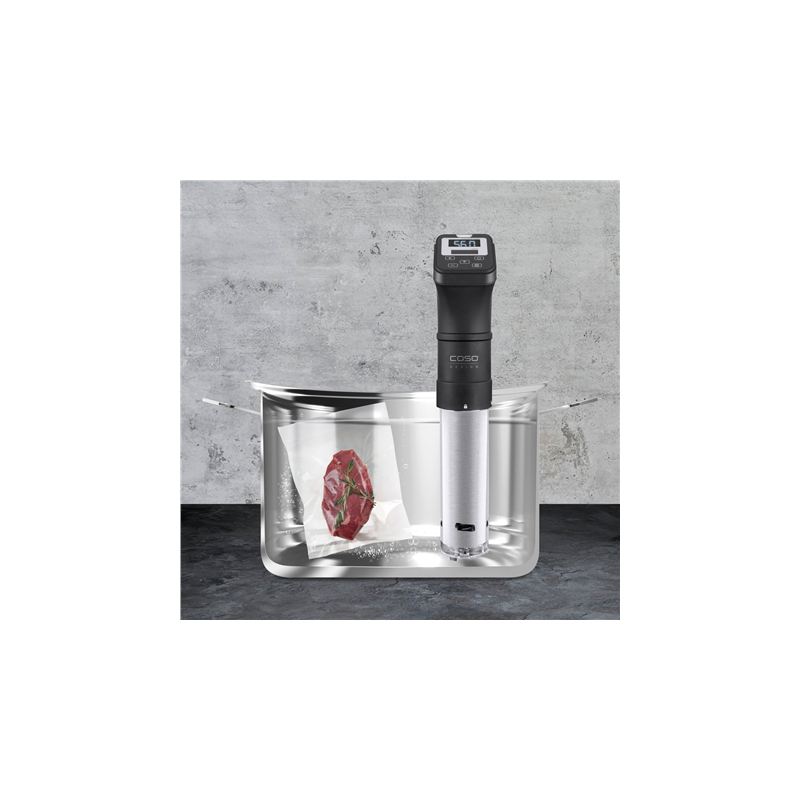 Precise temperature control up to 90 °C increments in 0.5 °C increments (32-194° Fahrenheit). Timer function: can be precisely set in 1 minute increments up to 99 hours 59 minutes. Pot height at least 12 cm. Smart Control: SousVide Stick can be controlled and read with the CASO Control App. Simple operation of the LED display using a sensor-touchcontrol panel.
