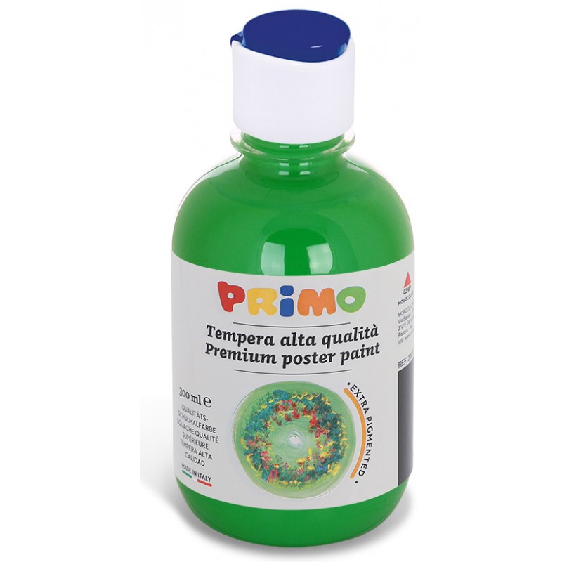 Guašas PRIMO, žalios spalvos, 300 ml. Guašas yra buteliuke su srovės valdymo dangteliu, todėl dažai puikiai išlaiko savo kokybę ir spalvą. Šie dažai padės jums įgyvendinti visus savo meninius sumanymus! Guašas 300 ml buteliuke su srovės valdymo dangteliu ypač tinka pradedantiesiems ir mažiems vaikams. Išdžiuvę dažai yra nepermatomi, ryškių tonų. Spalvas galima maišyti bei taip išgauti įvairius atspalvius. Jie gali būti naudojami ant įvairių paviršių: popieriaus, kartono, medžio, tekstilės, stiklo, terakotos, metalo ir plastiko. SVARBU: dėmės šalinti laikantis instrukcijų. Prieš naudodami nuimkite apsauginį dangtelį.