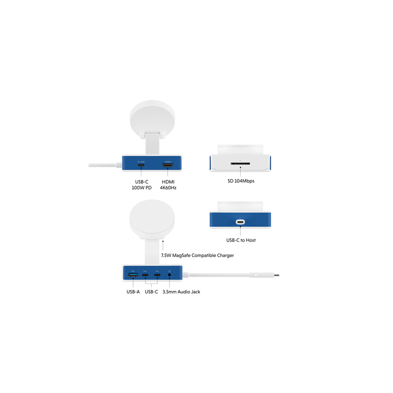 Hyper HyperDrive Flex MagCharge USB-C Hub, White/Blue | HD8100BUGL | HDMI ports quantity 1