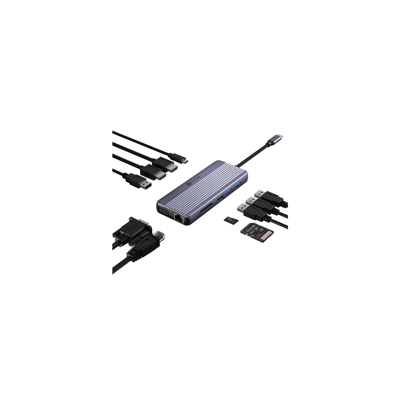 Icy Box Travel Dock 12-in-1, 3x Videoausgabe (2x HDMI + 1x VGA)
