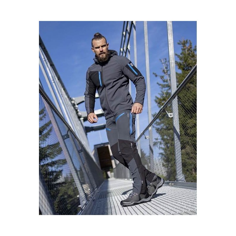 Rafinuoto SLIM FIT kirpimo vyriškos softshell kelnės. Keturių krypčių elastingas softshell ElasticTech®Active audinys. Funkcine kelnių forma užtikrina puikų judesių laisvumą. Darbo kelnės tinka ir sudėtingoms klimato sąlygoms. Darbo rūbai atsparūs vandeniui ir tuo pačiu kvėpuoja. Specialus vidinis sluoksnis garantuoja aukštą dėvėjimo komfortą. Daug patogių kišenių 1 kišenė su užtrauktuku priekinėje kojų dalyje ir 2 užtrauktuku užsegamos kišenės. Šoniniai vėdinimo užtrauktukai ir elastinga juosmens juosta padidina dėvėjimo komfortą. Su šviesą atspindinčios detalėmis. Audinys sertifikuotas OEKO-TEX® standartu. Kelnės tinkamas tiek darbui, tiek laisvalaikiui ar sportui.