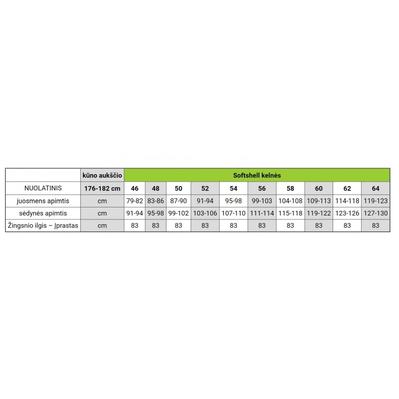 Dydžiai: nuo 46 iki 64