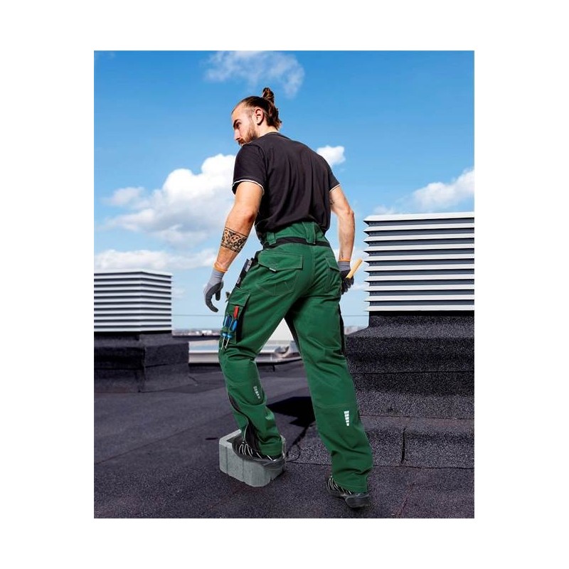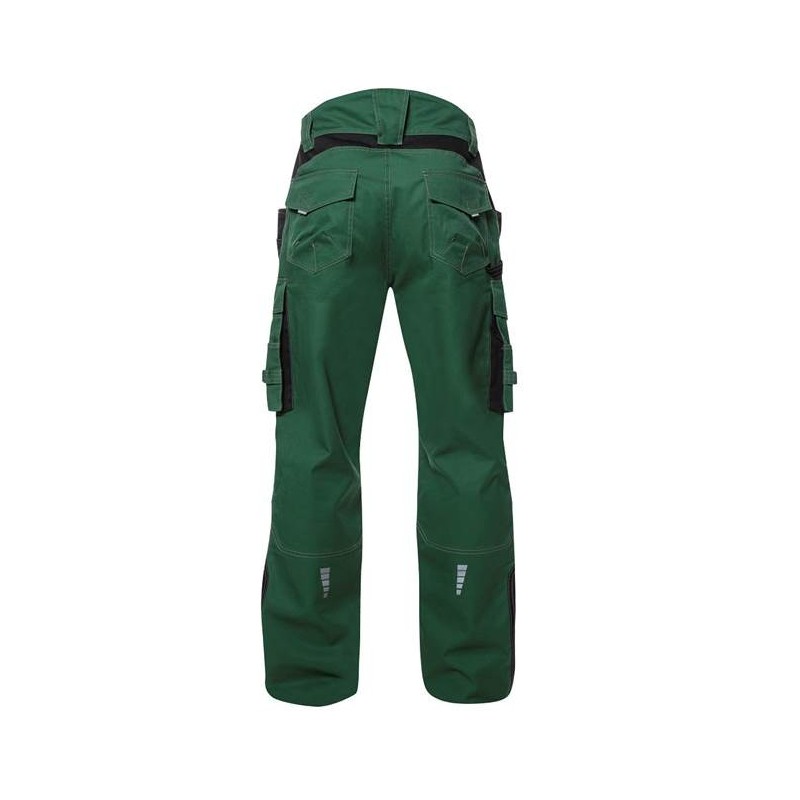 VISION kolekcijos darbo kelnės pagamintos iš aukštos kokybės medvilnės, poliesterio ir itin atsparių ruoželinių medžiagų mišinio. Iš pirmo žvilgsnio audinys primena džinsus dėl savo sportiško stiliaus ir kirpimo, kuris puikiai priglunda. Be to, kelnės siūlomos penkių spalvų, todėl jas lengva priderinti prie likusios darbo aprangos. VISION darbo kelnės turi dvigubas kelių dalis su kišene, kur prireikus galima įkišti antkelius. Dviguba medžiaga ir galimas kelių pagalvėlių įdėjimas maksimaliai padidina medžiagos apsaugą nuo trinties ir tuo pačiu sumažina kelių apkrovą klūpėjimo ar kitokio darbo krūvio metu kelių srityse. Daug įvairių įrankių kišenių. Gamintojas neapleido ir darbuotojo saugumo, todėl kelnės siuvamos kontrastingu rifliuotu siūlu ir komplektuojamos originaliais sidabriniais šviesą atspindinčiais raštais.