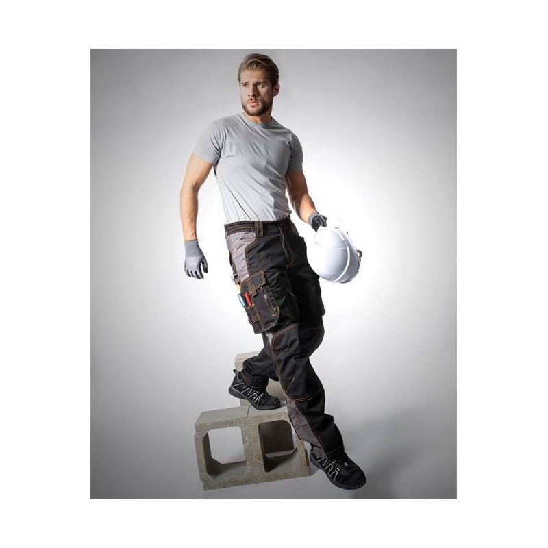 VISION kolekcijos darbo kelnės pagamintos iš aukštos kokybės medvilnės, poliesterio ir itin atsparių ruoželinių medžiagų mišinio. Iš pirmo žvilgsnio audinys primena džinsus dėl savo sportiško stiliaus ir kirpimo, kuris puikiai priglunda. Be to, kelnės siūlomos penkių spalvų, todėl jas lengva priderinti prie likusios darbo aprangos. VISION darbo kelnės turi dvigubas kelių dalis su kišene, kur prireikus galima įkišti antkelius. Dviguba medžiaga ir galimas kelių pagalvėlių įdėjimas maksimaliai padidina medžiagos apsaugą nuo trinties ir tuo pačiu sumažina kelių apkrovą klūpėjimo ar kitokio darbo krūvio metu kelių srityse. Daug įvairių įrankių kišenių. Gamintojas neapleido ir darbuotojo saugumo, todėl kelnės siuvamos kontrastingu rifliuotu siūlu ir komplektuojamos originaliais sidabriniais šviesą atspindinčiais raštais.