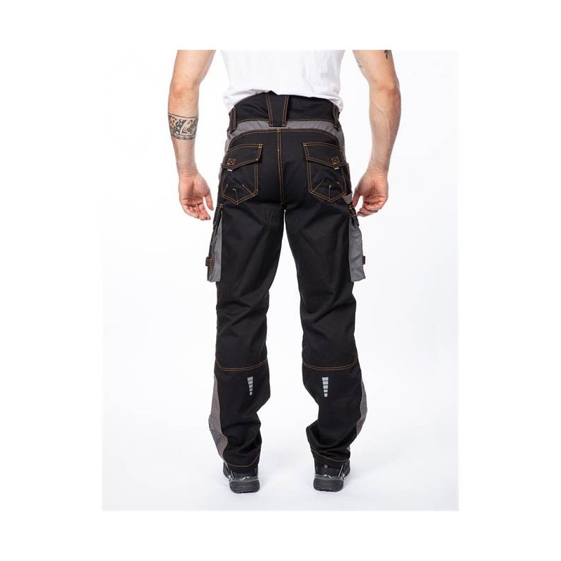 VISION kolekcijos darbo kelnės pagamintos iš aukštos kokybės medvilnės, poliesterio ir itin atsparių ruoželinių medžiagų mišinio. Iš pirmo žvilgsnio audinys primena džinsus dėl savo sportiško stiliaus ir kirpimo, kuris puikiai priglunda. Be to, kelnės siūlomos penkių spalvų, todėl jas lengva priderinti prie likusios darbo aprangos. VISION darbo kelnės turi dvigubas kelių dalis su kišene, kur prireikus galima įkišti antkelius. Dviguba medžiaga ir galimas kelių pagalvėlių įdėjimas maksimaliai padidina medžiagos apsaugą nuo trinties ir tuo pačiu sumažina kelių apkrovą klūpėjimo ar kitokio darbo krūvio metu kelių srityse. Daug įvairių įrankių kišenių. Gamintojas neapleido ir darbuotojo saugumo, todėl kelnės siuvamos kontrastingu rifliuotu siūlu ir komplektuojamos originaliais sidabriniais šviesą atspindinčiais raštais.
