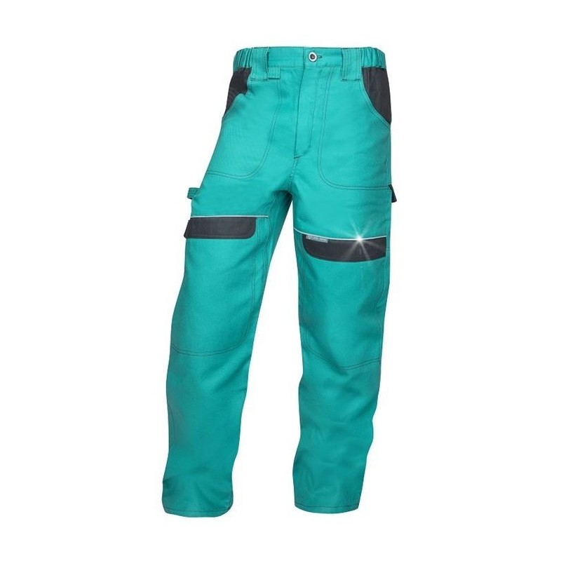 Tvirtos ir atsparios dėvėjimuisi, 100% medvilnės, drobinio pynimo, modernaus dizaino kelnės darbui. Trigubos siūlės. Keliai pastiprinti. Kišenės šonuose ir nugaros srityje. Jautriausiose vietose kišenės sustiprintos. Puskombinezonis yra iš 100% medvilnės ir pasižymi labai geru oro pralaidumu. Su atšvaitinėmis detalėmis.