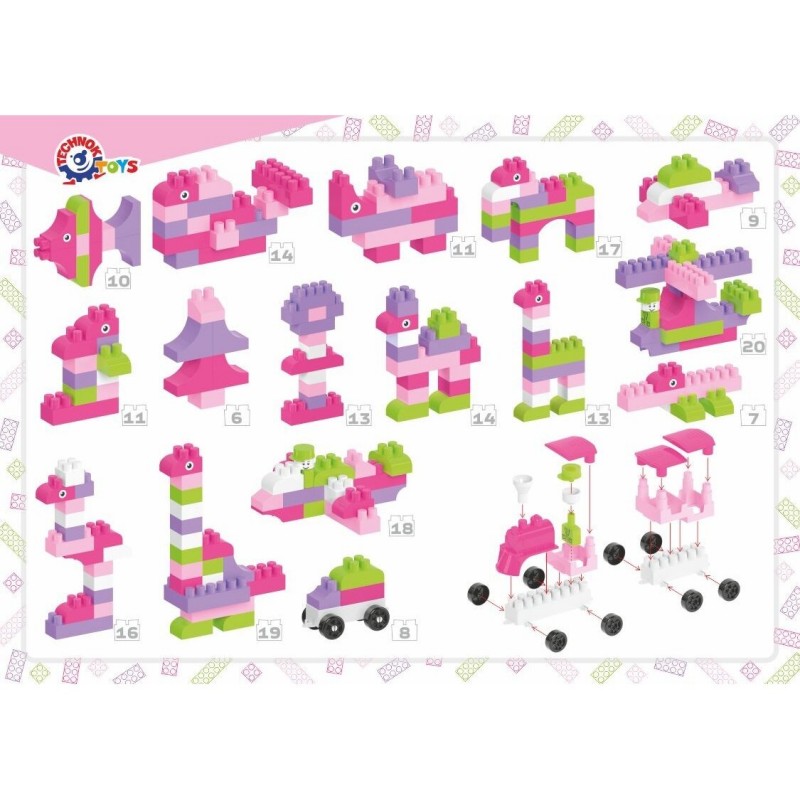 Rinkinyje esančios detalės yra subtilių rausvų atspalvių, kurie ypač patinka mažosioms princesėms. Įvairios formos – užapvalinti kampai, arkos, tvoros, langai ir durys – leidžia kurti tiek realistiškas, tiek fantazijos pasaulio konstrukcijas.