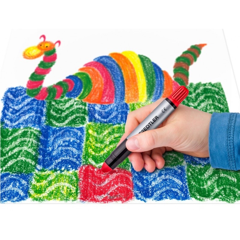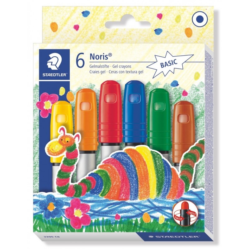 Gelinės kreidelės STAEDTLER Noris Club. Puikiai tinka piešimui ant tamsių paviršių, ant stiklo, kitų lygių paviršių. 6 spalvų rinkinys.