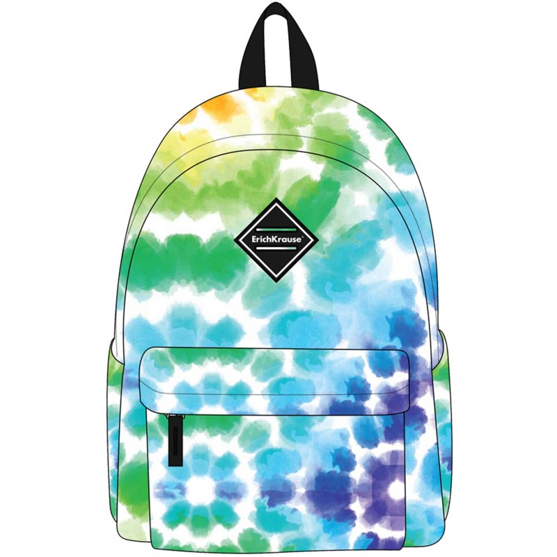 Kuprinė Erich Krause Green Tie-Die. Turi talpų A4+ dydžio skyrių, priekinę kišenę su užtrauktuku, dvi šonines kišenes ir paslėptą užtrauktuku užsegamą kišenę nugaroje. Skyriuje yra 15 colių nešiojamojo kompiuterio laikiklis ir mini laikiklis. Dirželių ir rankenos tvirtinimo taškai sutvirtinti papildomomis siūlėmis. Atlošas ir dirželiai yra minkšti ir patogūs dėl vidinio sandarinimo. Aukštos kokybės plastikiniai užtrauktukai lengvai atsidaro ir užsidaro viena ranka. Kuprinė pagaminta iš dilimui, šalčiui ir vandeniui atsparaus 100% poliesterio. Naudojamas kuprinės tūris 19 litrų, svoris 500 g. Matmenys 39x32x17 cm.
