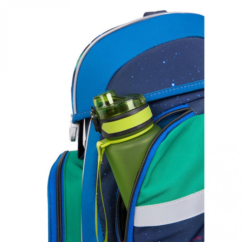Kuprinė COLORINO Nasa. Vieno talpaus pagrindinio skyriaus su atvartu, kuriame telpa visos knygos ir sąsiuviniai. Specialiai sustiprinta nugara iš EVA putų (elastinga medžiaga, pasižyminti puikiomis amortizacinėmis, apsauginėmis, izoliacinėmis ir dekoratyvinėmis savybėmis). Kuprinė padeda išlaikyti taisyklingą kūno laikyseną. Priekinė kišenė užsegama užtrauktuku. Taip pat yra dvi šoninės kišenės su užtrauktuku. Paminkštinta, standi rankena – patogiam kuprinės nešiojimui rankoje. Platūs, profiliuoti kuprinės dirželiai - juos galima laisvai reguliuoti, be to, yra užsegimas prie krūtinės su atšvaitu. Vandeniui atspari medžiaga. Sustiprintas dugnas su kojelėmis - tinkamai apsaugos daiktus ir neleis sugadinti kuprinės. Išmatavimai: 37x31x22 cm. Kuprinės svoris: 900 g.