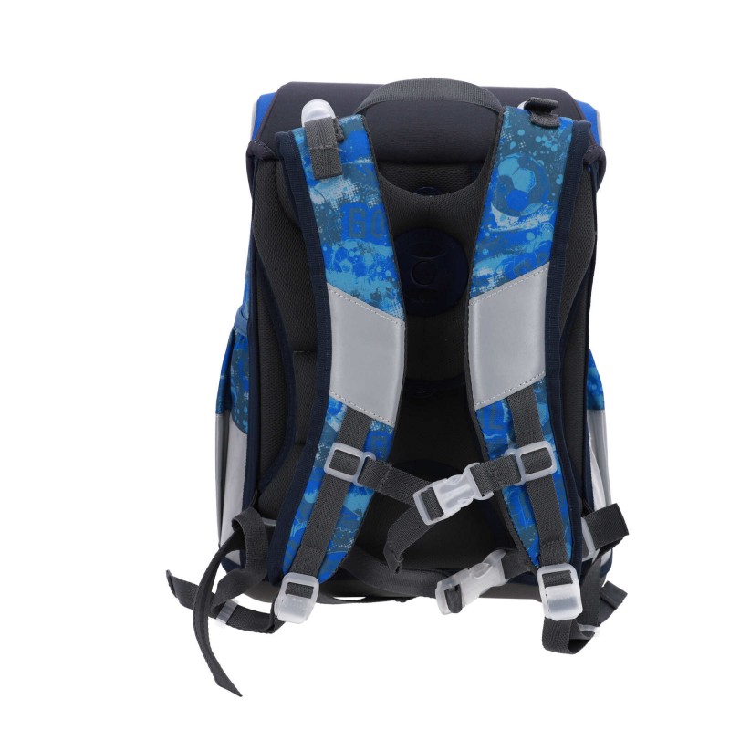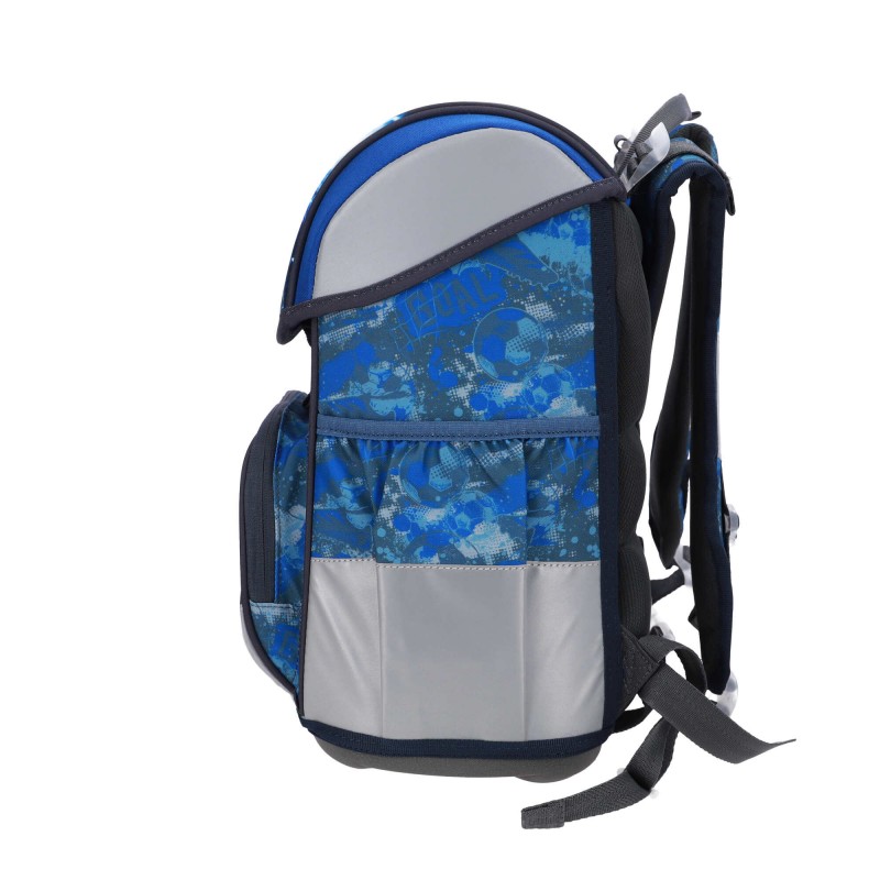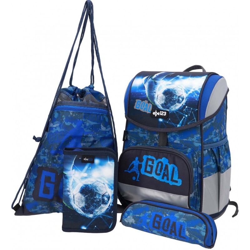 Kuprinė su 3 priedais ABC123 Football Goal. Su savaiminiu magnetiniu uždarymu. Su Fidlock užraktu, kurį lengva atidaryti viena ranka, net ir su pirštinėmis. Ergonomiška, patvari kuprinė. Turi šviesą atspindinčius elementus. Ergonomiškos formos nugara. Reguliuojamos petnešėlės ir dirželiai. Yra juosmens ir krūtinės dirželiai. 2 skyrių su 2 tampriomis kišenėmis šonuose. Stabilus, kietas dugnas. Medžiaga atspari vandeniui. Komplekte taip pat yra: sportinis krepšys, forminis užpildytas penalas su 28 vnt. priemonių ir vienas tuščias penalas. Matmenys: 40x27x18 cm. Kuprinės svoris apie 1000 g. Valyti drėgna šluoste.