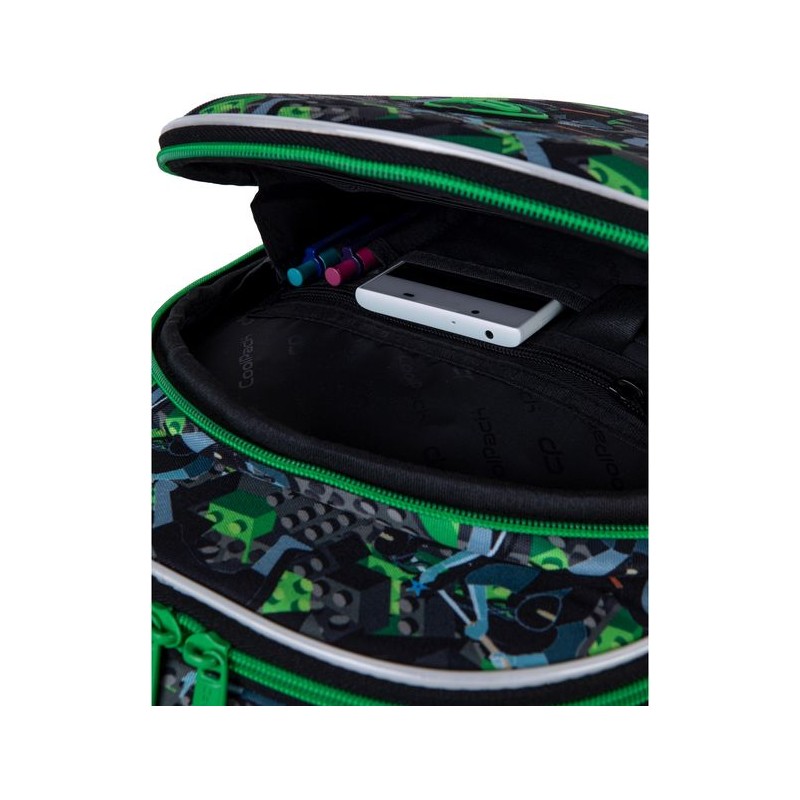 Kuprinė COOLPACK Turtle Kids From The Block. Aukštos kokybės, ergonomiška kuprinė užtikrinanti maksimalų komfortą. Kuprinės nugara pralaidi orui, turi paminkštintas, reguliuojamo ilgio petnešas. Viršuje yra rankena patogesniam pakabinimui arba nešimui. 2 skyrių, pagrindiniame didžiausiame užtraukiamame skyriuje bus patogu nešiotis kompiuterį ir knygas, o priekinis skyrius patogus norint susidėti smulkesnius daiktus. Dvi šoninės kišenės, patogios vandens buteliukams arba gertuvėms. Išmatavimai: 40x29x14 cm. Kuprinės svoris: 1080 g.