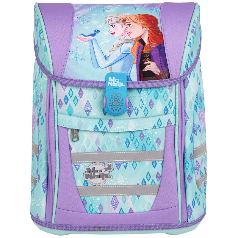 Kuprinė McNEILL Teneris Frozen. Tvirta mokyklinė kuprinė su jūsų vaiko mėgstamiausiu Disney personažu leis jam mėgautis puikia mokslo metų pradžia! Teneris mokyklinės kuprinės yra ergonomiškos, modernaus dizaino. Erdvus pagrindinis skyrius su atvartu, kuriame tilps visos knygos ir užrašų knygelės. Specialiai sustiprinta ir suformuota nugarėlė iš EVA putų su AirFlow technologija (lanksti medžiaga, pasižyminti puikiomis smūgius sugeriančiomis, apsauginėmis, izoliacinėmis ir dekoratyvinėmis savybėmis) – pasirūpins vaiko sveikata ir taisyklinga kūno laikysena. Priekinė kišenė su užtrauktuku, patogi susidėti būtiniausius reikmenis, kuriuos visada norisi turėti po ranka. Šoninės kišenės taip pat su užtrauktuku. Atšvaitai kiekvienoje kuprinės pusėje – užtikrinti saugumą pakeliui į mokyklą ir iš jos. Standinta viršutinė rankena – patogiam kuprinės nešiojimui rankoje. Magnetinis užraktas. Platūs, profiliuoti kuprinės dirželiai - juos galima laisvai reguliuoti, juose taip pat yra krūtinės užsegimas su atšvaitu. Vandeniui atspari medžiaga – apsaugo kuprinės vidų nuo sušlapimo. Sustiprintas dugnas – tinkamai apsaugos daiktus ir neleis sugadinti kuprinės. Išmatavimai: 30x36x19 cm. Kuprinės svoris: 980 g. Talpa 18 l.