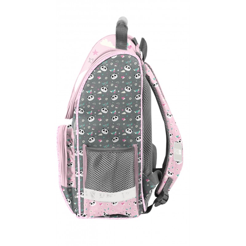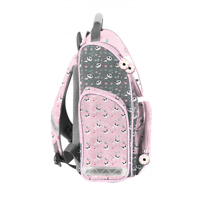 Kuprinė pradinukams PASO Panda. Puikiai tiks kaip pirma vaiko kuprinė einant į mokyklą. Kuprinė turi vieną talpų pagrindinį skyrių užsegamą dvikrypčiu užtrauktuku. Dekoratyviniai užtrauktuko laikikliai ne tik suteikia išskirtinumo, bet ir palengvina atsegimą. Viduje yra pertvaros, padėsiančios tvarkingai organizuoti daiktus. Priekinėje dalyje yra praktiška kišenė su užtrauktuku. Šonuose – dvi papildomos kišenės: viena iš tinklinės medžiagos, tinkama gertuvei ar buteliukui, kita – užsegama užtrauktuku. Ergonomiškai formuota, standi nugaros dalis efektyviai sumažina krūvį vaiko stuburui. Minkštos, reguliuojamos ir ergonomiškai išformuotos petnešos padeda palaikyti taisyklingą laikyseną. Kuprinės apačia yra sutvirtinta, o atšvaitiniai elementai užtikrina didesnį saugumą kelyje. Matmenys: 36x28x15 cm. Kuprinės svoris: 900 g.