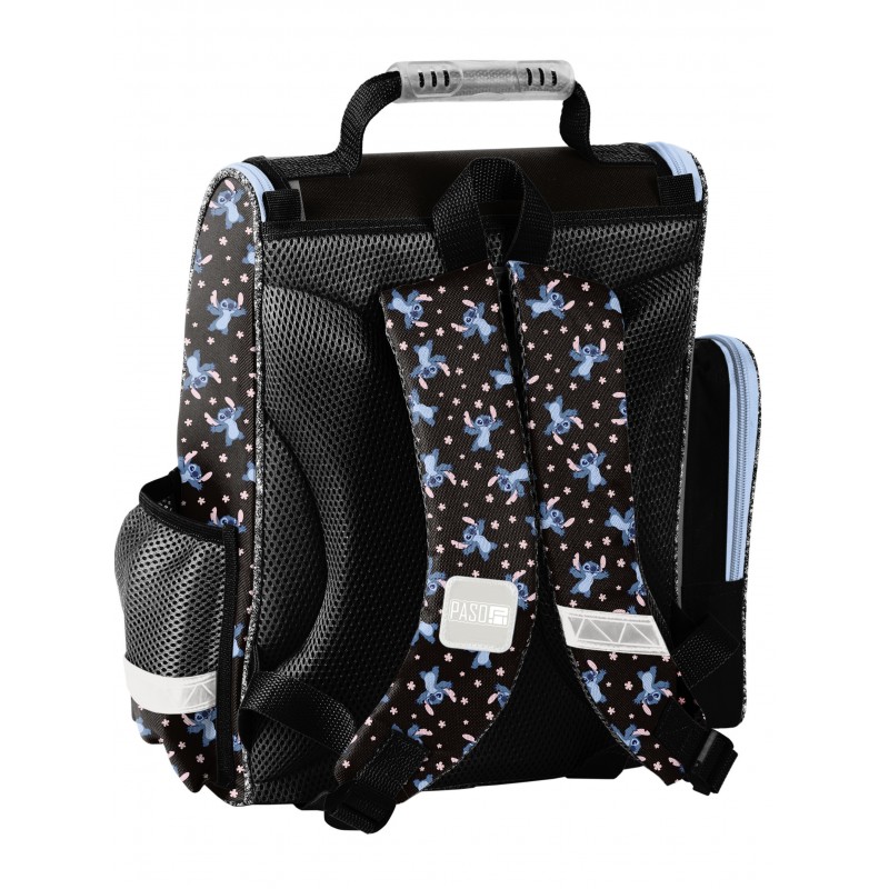 Kuprinė pradinukams PASO Disney Stitch. Puikiai tiks kaip pirma vaiko kuprinė einant į mokyklą. Kuprinė turi vieną talpų pagrindinį skyrių užsegamą dvikrypčiu užtrauktuku. Dekoratyviniai užtrauktuko laikikliai ne tik suteikia išskirtinumo, bet ir palengvina atsegimą. Viduje yra pertvaros, padėsiančios tvarkingai organizuoti daiktus. Priekinėje dalyje yra praktiška kišenė su užtrauktuku. Šonuose – dvi papildomos kišenės: viena iš tinklinės medžiagos, tinkama gertuvei ar buteliukui, kita – užsegama užtrauktuku. Ergonomiškai formuota, standi nugaros dalis efektyviai sumažina krūvį vaiko stuburui. Minkštos, reguliuojamos ir ergonomiškai išformuotos petnešos padeda palaikyti taisyklingą laikyseną. Kuprinės apačia yra sutvirtinta, o atšvaitiniai elementai užtikrina didesnį saugumą kelyje. Matmenys: 36x28x15 cm. Kuprinės svoris: 900 g.