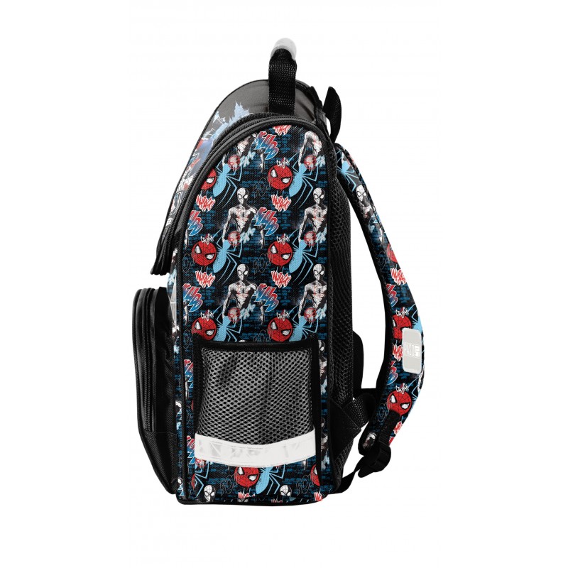 Kuprinė pradinukams PASO Spiderman, juoda. Puikiai tiks kaip pirma vaiko kuprinė einant į mokyklą. Kuprinė turi vieną talpų pagrindinį skyrių užsegamą dvikrypčiu užtrauktuku. Dekoratyviniai užtrauktuko laikikliai ne tik suteikia išskirtinumo, bet ir palengvina atsegimą. Viduje yra pertvaros, padėsiančios tvarkingai organizuoti daiktus. Priekinėje dalyje yra praktiška kišenė su užtrauktuku. Šonuose – dvi papildomos kišenės: viena iš tinklinės medžiagos, tinkama gertuvei ar buteliukui, kita – užsegama užtrauktuku. Ergonomiškai formuota, standi nugaros dalis efektyviai sumažina krūvį vaiko stuburui. Minkštos, reguliuojamos ir ergonomiškai išformuotos petnešos padeda palaikyti taisyklingą laikyseną. Kuprinės apačia yra sutvirtinta, o atšvaitiniai elementai užtikrina didesnį saugumą kelyje. Matmenys: 36x28x15 cm. Kuprinės svoris: 900 g.