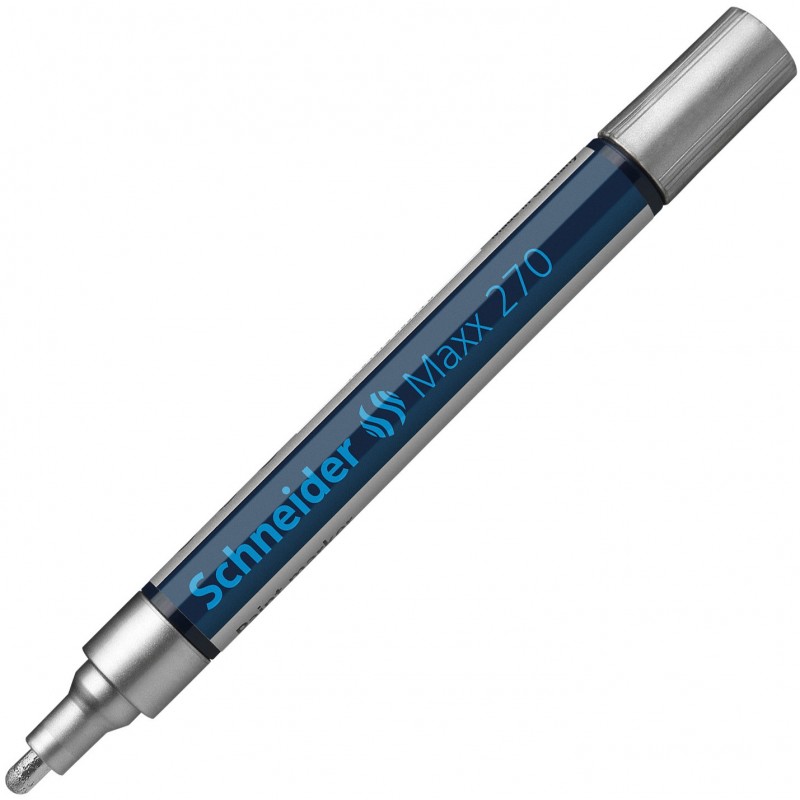 Žymeklis SCHNEIDER Paint Marker Maxx 270. Apvalia galvute. Tinka daugeliui paviršių: metalui, stiklui, keramikai, porcelianui, plastikui, gumai, odai, kartonui ir kt. Atsparus įvairioms lauko sąlygoms. Brėžio storis 1-3 mm. Sidabrinės spalvos.