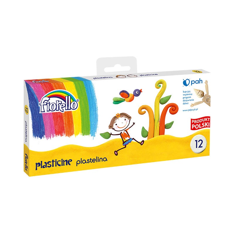 Plastilinas FIORELLO, 12 spalvų. 12 spalvų po 16 gramų. Ryškios, sodrios spalvos. Minkštos konsistencijos, netepa rankų. Kartoninėje dėžutėje.