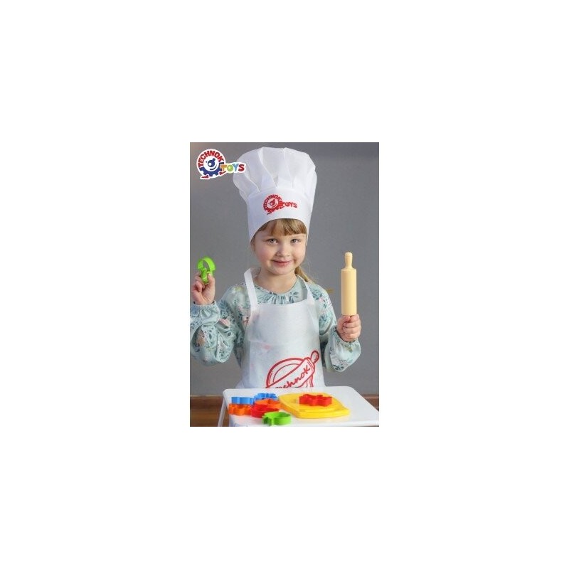 Su šiuo rinkiniu, jūsų vaikas tikrai jausis kaip profesionalus virėjas, nes komplekte yra balta prijuostė ir šefo kepuraitė.