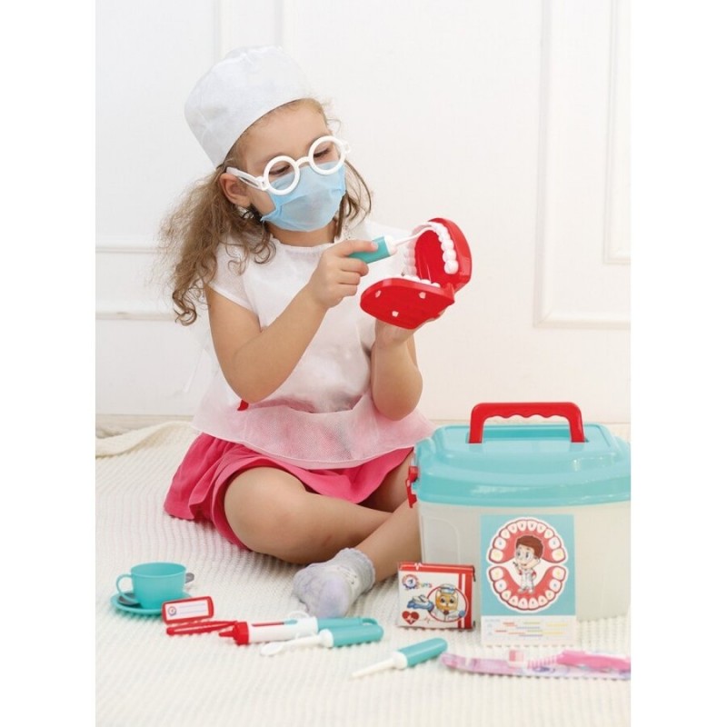 Specialus gydytojo apsiaustas, kepurė ir, svarbiausia, apsauginė kaukė padės laikytis visų higienos taisyklių „stomatologo kabinete“. Taigi mažylis tikrai pasijus kaip tikras gydytojas.