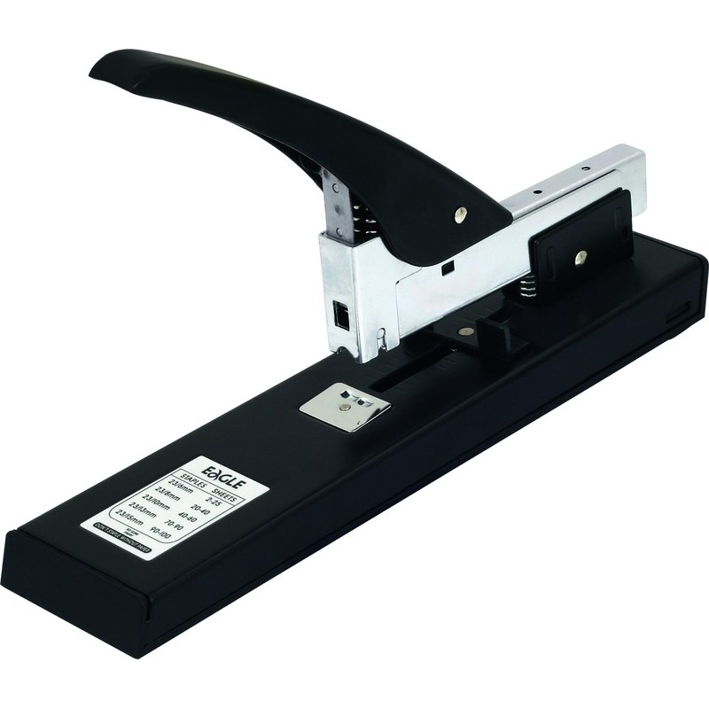 Pramoninis segiklis EAGLE 938. Labai patvarus, ilgaamžis. Plieninis korpusas. Sega iki 100 lapų. Tinka sąsagėlės 23/6, 23/8, 23/10, 23/13, 23/15. Reguliuojamas segimo gylis iki 6,9 cm. Juodos spalvos korpusas.
