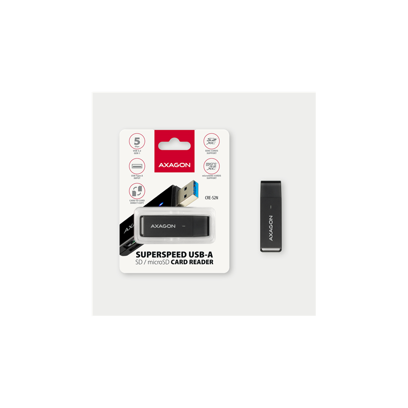 AXAGON Slim super-speed USB 3.2 Gen 1 card reader with a direct USB-A connector | CRE-S2N