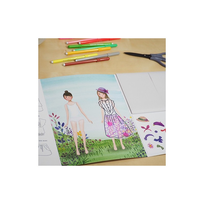 Šioje veiklos knygelėje rasite smagius drabužių ir aksesuarų paveikslėlius, kuriuos galėsite perpiešti, nuspalvinti ir iškirpus priklijuoti ant norimo personažo knygelėje ar bet kur, ant lygaus paviršiaus. 9 skirtingi drabužių dizainų paveikslėliai, 60 lipnių lapų, kurių formatas 203 x 150 mm, 21 lipdukas su aksesuarų piešiniais. Tinkama vaikams nuo 4 metų.