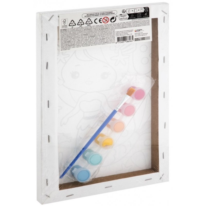 Spalvinimo pagal skaičius rinkinys GRAFIX Undinė, drobė. Rinkinyje yra drobė su paruoštu piešiniu, sintetinis teptukas ir 6 akrilinių dažų spalvos. Darbo eiga: Padėkite visas medžiagas priešais save, dažų indelių skaičiai atitinka skaičius ant drobės. Nuspalvinkite visas sritis tinkamomis spalvomis, įskaitant per linijas. Pradėkite nuo šviesių spalvų. Jei naudojate naują spalvą, kruopščiai nuvalykite teptuką, kad spalvos nesimaišytų. Galiausiai tapykite tamsiomis spalvomis. DĖMESIO! Saugoti nuo šalčio. Rekomenduojama laikyti ne žemesnėje nei +5C temperatūroje. Rekomenduojama vaikams nuo 4 metų. Įspėjimas! Netinka jaunesniems kaip trejų metų vaikams. Naudoti prižiūrint suaugusiesiems. Išmatavimai: 29,7x19,5 cm.