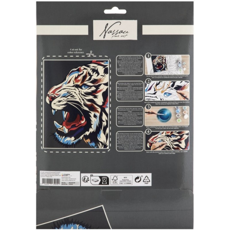 Spalvinimo pagal skaičius rinkinys GRAFIX Tigras, kartonas. Kiekvienas gali būti menininku! Tapydami pagal skaičius galite sukurti gražių paveikslų, net jei niekada anksčiau nebandėte. Rinkinyje yra viskas, ko reikia sukurti nuostabų paveikslą: 9 spalvų dažai su numeriais, teptukas, kartoninis pagrindas. Nuspalvintas paveikslas gali būti puiki dovana! Rekomenduojama vaikams nuo 8 metų. Įspėjimas! Netinka jaunesniems kaip trejų metų vaikams. Naudoti prižiūrint suaugusiesiems. Išmatavimai: 33,5x23,8 cm.