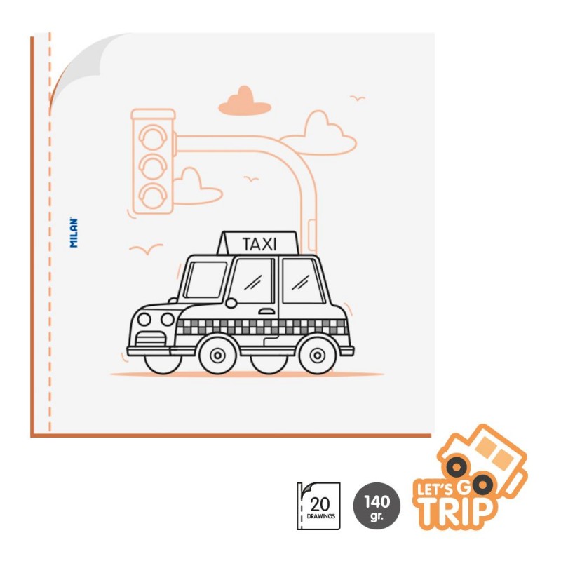 MILAN spalvinimo knygelė "Let´s Go Trip" su 20 piešinių, vaizduojančių sausumos, vandens ir oro transporto priemones, padeda vaikams susipažinti su skirtingais transporto būdais ir jų ypatumais. Skirta vaikams nuo 4 metų. Skatina kūrybiškumą, padeda lavinti koordinaciją, smulkiąją motoriką ir koncentraciją. Knygos matmenys yra 21x21 cm, o popierius - 140 g. Knygutės lapai yra su perforacija, kad būtų lengva išplėšti puslapius. Mediena popieriui yra gaunama iš miškų ar plantacijų, kurios valdomos atsakingai, laikantis aplinkosaugos standartų.