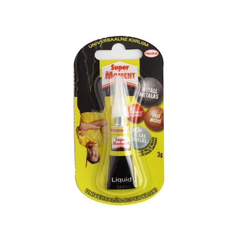 Ypač stiprios fiksacijos klijai SUPER MOMENT. Skirti klijuoti medį, plastiką, stiklą, keramiką, kamštines medžiagas ir kitus paviršius. Greitai džiūsta. Talpa: 3 g.