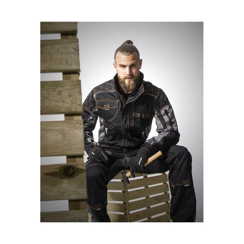 Vyriškas darbo švarkas iš VISION gaminių linijos – tai dizainerių sukurti darbo rūbai iš aukštos kokybės medžiagų. Darbinis švarkas pagamintas iš medvilnės, poliesterio ir ruožo mišinio, kuris dėl didelio atsparumo daugiausiai naudojama sunkių darbo drabužių ir uniformų gamyboje. Darbo švarkas VISION, siūlomas XXS - 7XL dydžių, puikiai tinka dėl universalaus kirpimo. Be to, prie bendro komforto prisideda ir anatomiškai suformuota paaukštinta apykaklė, reguliuojamas rankovių plotis bei užveržimas ties juosmeniu spaudėmis. Viršutinės rankovių dalies siūlės pabrėžia pečių sritį. Sustiprintos ir dygsniuotos daugiausiai dylančios vietos, apsaugo švarką nuo pažeidimų. Darbo švarko nugarinėje dalyje esanti paslėpta ventiliacija užtikrina temperatūros reguliavimą darbo krūvio metu ir sumažina nemalonų perkaitimą bei prakaitavimą. Gamindamas darbo rūbus, gamintojas neapleido svarbios darbuotojų saugos ir matomumo problemos, todėl darbo apranga siūta kontrastingu briaunu siūlu ir papildytas originaliais sidabriniais šviesą atspindinčiais raštais bei aksesuarais. Švarkas užsegamas užtrauktuku. Detalų dizainą užbaigia sportiškas liemenavimas ir daugybė funkcionalių kišenių – dvi kišenės prie krūtinės, kišenė su užtrauktuku ant kairės rankovės ir dvi apatinės kišenės su užtrauktuku. Ant darbo švarko galima atsispausdinti savo įmonės logotipą.