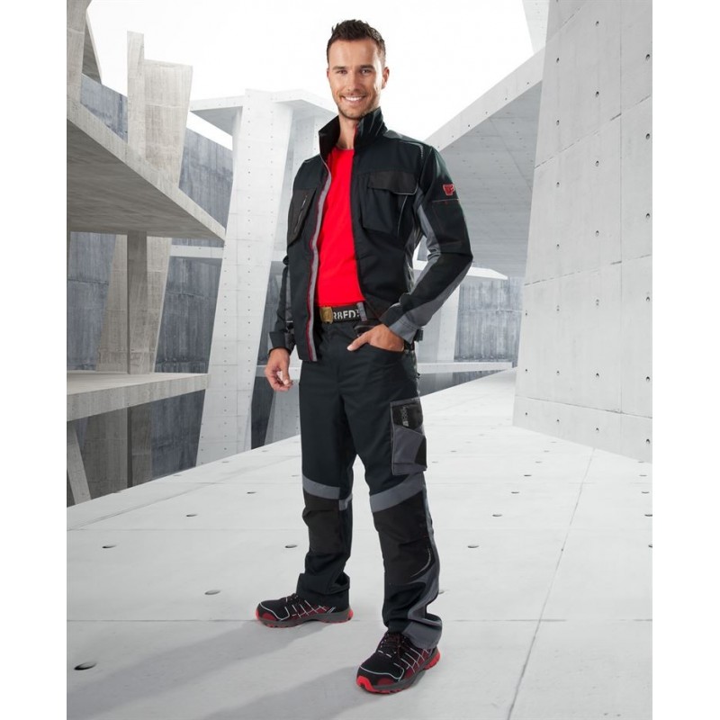 Aukščiausios kokybės R8ED+® kolekcijos darbinis švarkas su uždengta ventiliacija nugaroje. Turi 2 šonines kišenes su užtrauktuku, 3 kišenes ant krūtinės ir vieną kišenę ant rankovės. Galima reguliuoti liemens laisvumą. Švarkas turi šviesą atspindinčius elementus.