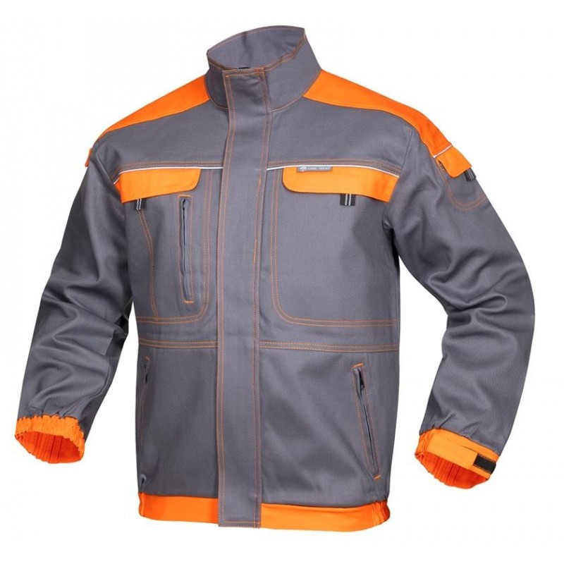 Tvirtas ir atsparus dėvėjimuisi 100% medvilnės drobinio pynimo švarkas užsegamas kokybišku užtrauktuku, apsaugotu po atvartu. Paaukštinta apykaklė. Dvi kišenės krūtinės srityje, užsegamos sagomis ir dvi kišenės šonuose. Krūtinės srityje kišenė telefonui, viena kišenė ant kairiosios rankos. Rankogaliai su sagomis. Elastingas apsiuvas švarko apačioje puikiai prisitaiko prie kūno formos. Jautriausiose vietose kišenės sustiprintos. Švarkas yra iš 100% medvilnės ir pasižymi labai geru oro pralaidumu. Su atšvaitinėmis detalėmis.