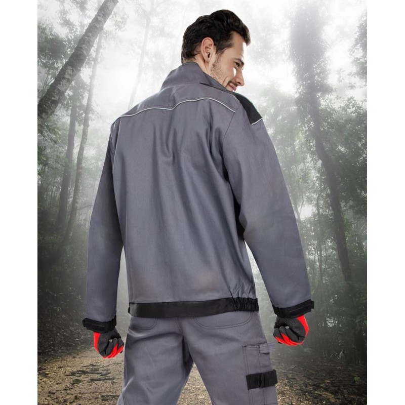 Tvirtas ir atsparus dėvėjimuisi 100% medvilnės drobinio pynimo švarkas užsegamas kokybišku užtrauktuku, apsaugotu po atvartu. Paaukštinta apykaklė. Dvi kišenės krūtinės srityje, užsegamos sagomis ir dvi kišenės šonuose. Krūtinės srityje kišenė telefonui, viena kišenė ant kairiosios rankos. Rankogaliai su sagomis. Elastingas apsiuvas švarko apačioje puikiai prisitaiko prie kūno formos. Jautriausiose vietose kišenės sustiprintos. Švarkas yra iš 100% medvilnės ir pasižymi labai geru oro pralaidumu. Su atšvaitinėmis detalėmis.