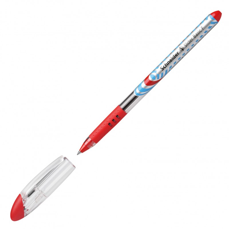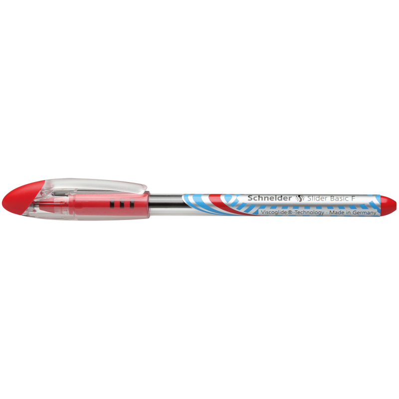 Tušinukas SCHNEIDER Slider Basic. Rašalas pagamintas vandens pagrindu, greitai džiūsta. Su patogia gumine ergonomine laikymo zona. Rašymo ilgis apie 3300 metrų. Brėžio storis 0.4 mm. Raudonos spalvos nekeičiama šerdelė.