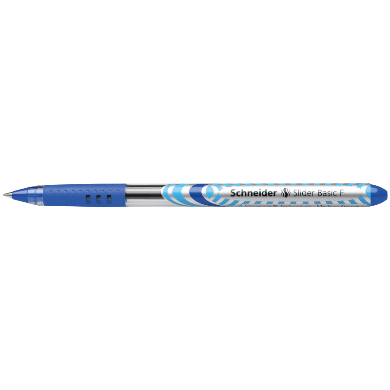 Tušinukas SCHNEIDER Slider Basic. Rašalas pagamintas vandens pagrindu, greitai džiūsta. Su patogia gumine ergonomine laikymo zona. Rašymo ilgis apie 2700 metrų. Brėžio storis 0.5 mm. Mėlynos spalvos nekeičiama šerdelė.
