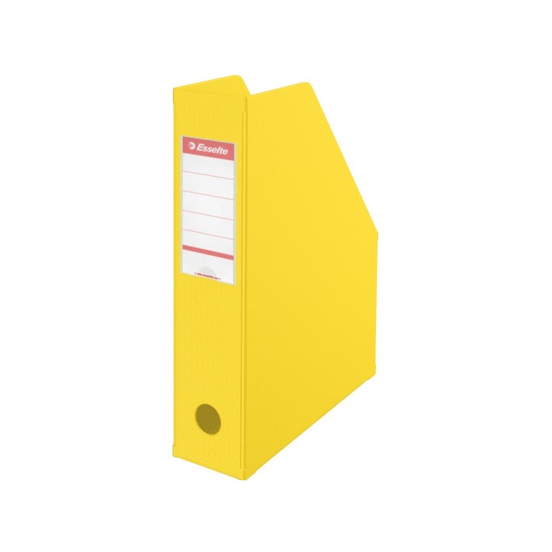 Vertikalus stovas dokumentams ESSELTE. A4 formatas. Patogus naudoti, sulankstomas. Galimybė keisti lapelius ant stovo nugarėlės. Pagamintas iš itin tvirto kartono dengto PVC plėvele. Nugarėlės plotis 70 mm. Geltonos spalvos.